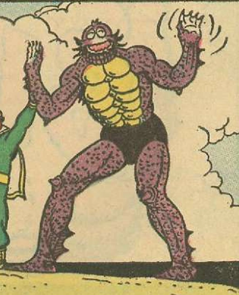 Anti-Man first appeared when the Tinman landed at the bottom of the ocean. Claiming to be the last of his race and vowing to destroy all humans, he had an intense hatred for land-dwellers. Due to this, Anti-Man did not get off on the right foot with the hero Fatman the Human Flying Saucer when the two first met. However, when Fatman asked Anti-Man to help train Tinman, the aquatic humanoid agreed. Upon the training being complete, Fatman asked Anti-Man to join the team he was forming with Tinman: The Anti-Evil Team! Anti-Man agreed however, his wife, Mrs. Anti-Man, appeared and forced the hero to return home and resume his duties of being a husband and father to their 5000 children (thus revealing Anti-Man's story of being the last of his race to be a lie).