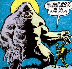 The Ape Man was once a normal man years ago who upset a local witch doctor. In retribution, the witch doctor cursed the man, transforming him into a large giant ape creature. The only way that the curse could be lifted was for him to transfer it to another person, an incredibly hard task in the uninhabited jungles of the Lost Island. His long lasting curse, however, finally came to an end when he found the escaped convict Salty Gruner.