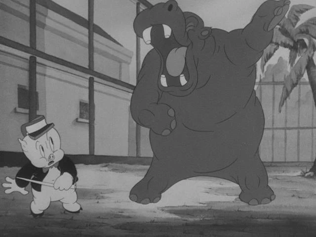 The Hippopotamus is said to be a big brute that is armored like a tank. The Narrator says his skin is so tough that even a bullet can hardly pierce it. Porky Pig is seen as a demonstrator on the narrator's commentary about the toughness of the hippo's skin. Porky demonstrates he consistently prodding a stick to the hippo's skin during his commentary. Then, out of nowhere, both commentaries contradict otherwise as the hippo breaks down laughing, ticklish at the stick poking him.