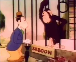 The baboon is one of the many animals that reside at the Kalama Zoo. He convinces the zookeeper to switch the baboon's place with a similar-looking human onlooker