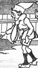 Billy Bimbo is young boy with a gnome-like cap who goes on adventures with Peter Porker, an anthropomorphic pig wearing plaid pants. They are the stars of the 1920s newspaper comic strip Billy Bimbo and Peter Porker by British artist Harry Folkard which ran from 1920-1925 in the London Evening News. Most gags featured the pair pulling pranks and then being punished.