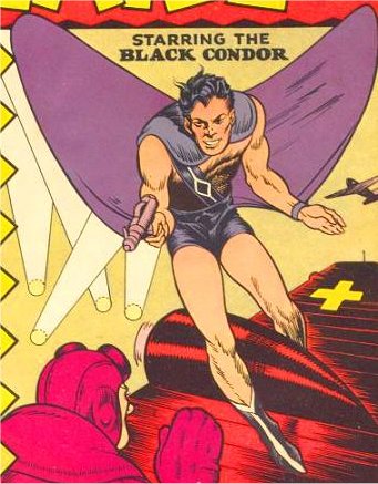 At first, he traveled throughout Asia, fighting evil wherever he encountered it. But, after a few adventures, Richard traveled to New York. He operated as Black Condor full-time until Crack Comics #11, when he saw gangsters dump the mortally wounded Senator Thomas Wright down the river. The young senator ran afoul of the Senator Jaspar Crow, who hired the gangsters to get rid of Thomas because he would not vote for the pork-ridden dam appropriation bill. With his dying breath, Thomas asked Black Condor to take him to Doctor Foster, the father of his fiance, Wendy Foster.