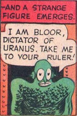 Bloor has human-looking ears covered by devices while on Earth, possibly a means of communicating with his fleet, and claims that his people knows and speaks all languages of the universe. Besides his Uranian forces, Bloor employs the Amazon Regiment of fighting women and can call on three huge six-armed steel robots.