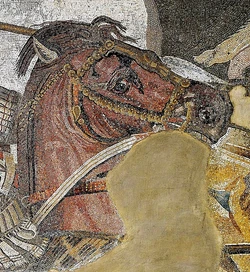 Bucephalus or Bucephalas, was the horse of Alexander the Great, and one of the most famous horses of classical antiquity. According to the Alexander Romance (1.15), the name "Bucephalus" literally means "ox-headed", and supposedly comes from a brand (or scar) on the thigh of the horse that looked like an ox's head. Ancient historical accounts state that Bucephalus's breed was that of the "best Thessalian strain", and that he died in what is now Punjab, Pakistan, after the Battle of the Hydaspes in 326 BC. Alexander was so grieved at the loss of his horse that he named one of the many cities he founded after him, as Alexandria Bucephalus.