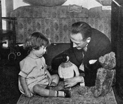 Christopher Robin's Penguin is a toy penguin plush that was one of Christopher Robin's toys. A obscure photograph shows A.A. Milne and his son Christopher Robin playing with a penguin toy alongside the bear that would become Winnie-the-Pooh.