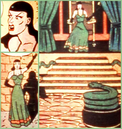 The Cobra Queen was the ruler of a hidden canyon filled with deadly snakes. Few made it to her palace alive, but those who did usually found themselves prisoners in her dungeon. She kept them here, until she had time to properly torture them, something she not only enjoyed, but had honed into a fine art. Her men managed to capture a wounded Claw, but had difficulty keeping him restrained. The Cobra Queen suggested that the two of them join forces and they signed a pact to rule the world together. When the Ghost came looking for the Claw, the Cobra Queen managed to get the upper hand on him.