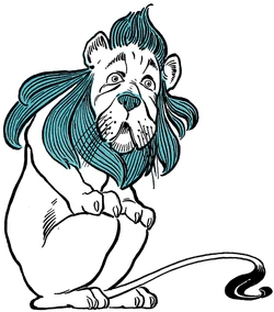 While accompanying Dorothy to find Glinda, The Good Witch of the South, the party traveled through a dark forest in the Quadling Country which was home to hundreds of beasts. These animals were being terrorized by a spider-like monster the size of an elephant. The Cowardly Lion agreed to fight this monster but, found it asleep and snapped its thin neck. The grateful animals made him their king and, after fulfilling his duty to Dorothy, he returned to rule over them.