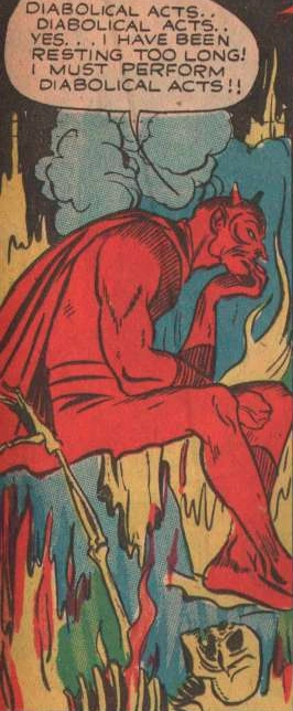 In his first appearance, He was described as a masked underworld czar posing as a traditional devil to scare away investigations. He pretends to bury his victims alive but actually has underground chute which leads to a ship. Once on the ship, Doctor Devil would drug the victims using opium fumes and deliver them to his European employer to be used a cannon fodder in future battles. However his plans are foiled by Terry Dane and Black Owl and was believed to have died after falling from the lighthouse where their confrontation occurred.