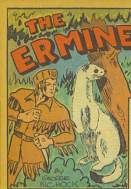 The Ermine was a mysterious frontiersmen who wore a referable outfit made from the brown summer coat of the ermine on one side and the white winter coat on the other. It allowed for him to blend in to trees and snow. He was an orphan raised by a woman who had lost her husband to a Native American raid. He would help settlers by protecting them from hostile tribes such as the Iroquois. On one occasion he saved Alice Thorn and her brother Jim after natives burn their cabin to the ground.