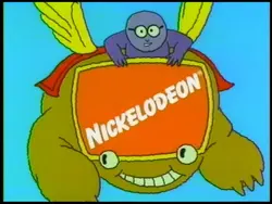A creature sneaks towards a boy watching TV and winks at the viewer. The creature jumps into the TV, the boy rides it, they fly in front of the camera, and the Nickelodeon logo appears on the creature's screen.
