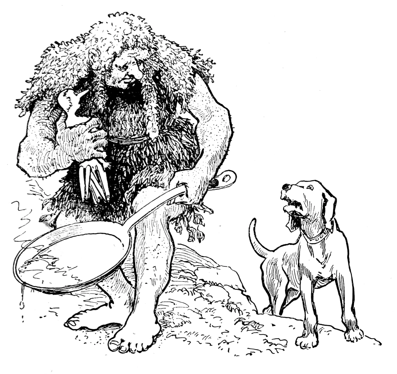The Green Fisherman, depicted as a giant, preparing to cook Pinocchio (1904).