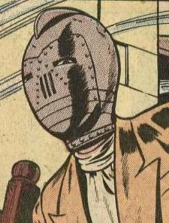 However, immediately after taking control of the syndicate he found himself once again confronted by the Doll Man, this time in hand-to-hand combat. While Doll Man initially had the upper hand on the unpowered criminal, Iron Mask was eventually able to render him unconscious by head-butting him with his helmet. He then attempted to kill the Doll Man by drowning him in a goldfish tank, but the hero escaped in time to ambush Iron Mask at his attempted robbery of the world's most expensive wallpaper. During their second battle the Iron Mask was once again able to best Doll Man by using his helmet as a weapon and briefly escaped capture. However, he was soon forced to return to the scene of the crime upon realizing that Doll Man had stolen his only copy of the key, which he would slowly starve to death without.