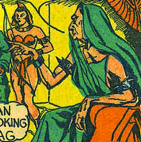 Queen Izzuki was the old hag who ruled Amazonland, home of "almond-eyed" warrior women. She kidnapped Dr. Chandler in the hopes that he could make her young again, but he escaped with the help of Captain Kidd, who Izzuki wanted for her husband.