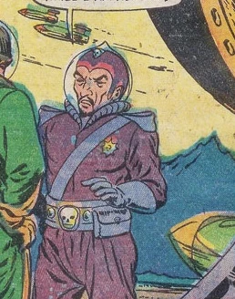 Lord Kazmar attempts to flee, but he is captured by the slaves made ill by exposure to lectium radiation. "So the overlord of Uranus joined the walking dead in the pits of Uranus! To rot away to a slow deserved death!!"