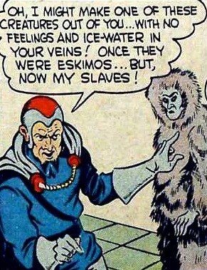Rolf Mansted was a brilliant scientist and explorer who disappeared during an arctic expedition. In fact, he had actually built himself a headquarters in Northern Alaska, from which he planned to destroy civilization, by causing Earth to experience a new ice age. By the time he was discovered by Hydroman, he was living in an expansive heated palace that he called Pola Castle, which was hidden beneath a mountain of ice and snow. He had already succeeded in causing the arctic glaciers to extend into previously wooded areas of Alaska. Hydro-Man eventually managed to stop King Frio, but not before the King froze himself solid.