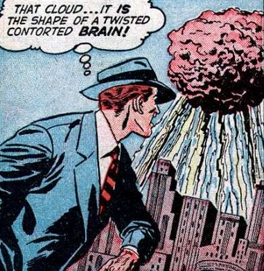 The brain of Kon Tiri, Japan's "worst criminal", was being studied by Professor Higi Yoshowa, the "head of the department of comparative physiology at a leading university in Japan". While giving a lecture on the brain, Hiroshima is hit with an atomic bomb. Higi survives the blast, only to see it grow into a powerful Cosmic Brain with atomic energy.Higi describes this to Professor Brett Donaldson. Higi Yoshowa then passes away from radiation poisoning.