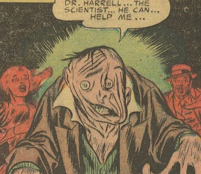 Dawson murders Boyle by strangling him with his elongated hands. He discovers returning to normal form is difficult, so he seeks out the assistance of the noted scientist, Doctor Harrell. While Harrell is trying to treat him, Dawson finds out Harrell knows about Doctor Boyle's work on Dawson, which could lead to Harrell figuring out Dawson was Boyle's murderer.