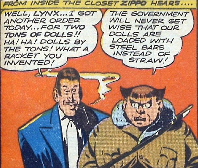 Lynx ran a criminal operation in which he sold steel reserved for the war effort to illegal buyers under the guise of selling dolls. His operation was discovered and foiled by Zippo.