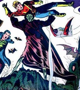 Misery was a supernatural and immortal creature, with a bony body and a flaming skull-like head. He claimed that he was the son of evil and could not die. Airboy believed that he was death itself. Misery had some strange connection to the cliff and the Black Hole of Calcutta (apparently, a volcanic pit that led into the "Air Tomb", not the historical prison), which erupted with lava when Misery was injured. Misery was able to transform the "Air Tomb" into a flying aircraft, though it was made of heavy stone. It did not have any guns, but could emit an electrical burst which could down a plane. The interior could be filled with toxic fumes. Misery seemed to be capable of enveloping an area in darkness, he could transmit his voice over any radio and he possessed mind control abilities. Misery was said to float when he moved across the ground. He sometimes wielded an axe and he was a good combatant, especially adept at kicking.