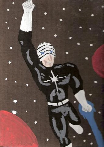 Mike is inhabited by the spirit of an alien. He has the ability to talk to this spirit directly, in order to benefit from its alien knowledge. The orb which brought the spirit to Earth also granted Mike the power of flight, and mastery over a unique form of energy which Outworlder can channel into wide concussive blasts or narrow piercing beams.