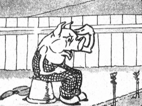 Peter Porker is an anthropomorphic pig wearing plaid pants who goes on adventures with a young boy with a gnome-like cap named Billy Bimbo. They are the stars of the 1920s newspaper comic strip Billy Bimbo and Peter Porker by British artist Harry Folkard which ran from 1920-1925 in the London Evening News. Most gags featured the pair pulling pranks and then being punished.