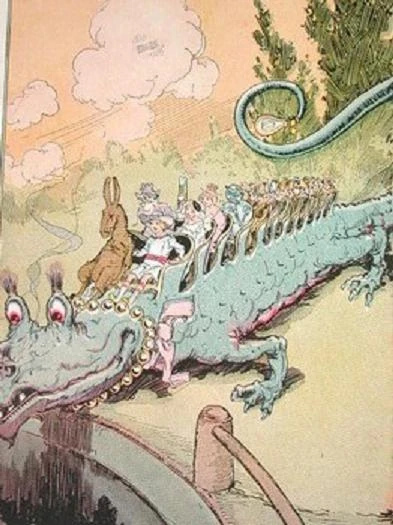 Quox had insulted the original dragon, calling him senile, and for this, Tititi-Hoochoo the Great Jinjin, made him his Instrument of Vengeance against the Nome King. He strapped seats to the dragon's back and had him carry Betsy Bobbin, Private Files, Hank the Mule, Polychrome, the Shaggy Man, Tik-Tok, Queen Ann Soforth and her army back through the Hollow Tube. Quox used the enchanted ribbon around his neck to cause the Nome King to forget his magic, and he deposed the Metal Monarch exiling him from his kingdom with eggs, which are lethal to Nomes. When the conquest of the Nome King was finished, Quox returned home through the Hollow Tube.