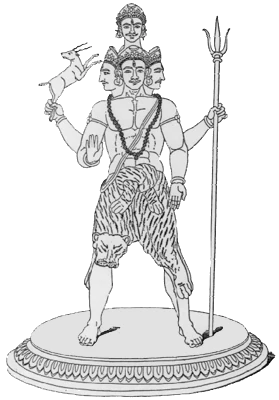 Rudra is a Rigvedic deity linked to Shiva, associated with storms, wind, medicine, and hunting. The name means “the roarer” or “one who eradicates problems from their roots,” and can imply “the most severe or frightening one.” In the Rigveda, he is praised as “the mightiest of the mighty.” Rudra is a significant figure in Shaivism, appearing in the Shiva Sahasranama and the Shri Rudram hymn of the Yajurveda. He is also revered as Sadasiva (mighty Shiva) and Mahadeva, with Sadashiva regarded as the Supreme Being in the Siddhanta Shaivism tradition.