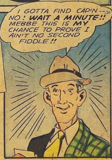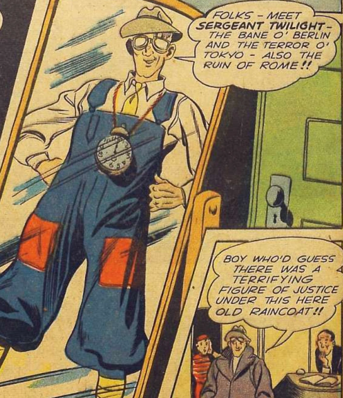 Fawcett carried this over to his comic appearances, except for issue #2 where he became Sergeant Twilight before quickly going back to just Ichabod (or "Icky/Ikky" for short).