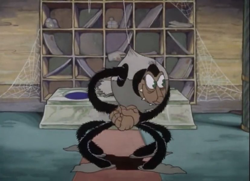 The Spider is the main antagonist of the 1936 Fleischer Color Classic cartoon Cobweb Hotel. In his original film he's a con artist posing as a hotel manager who tricks unsuspecting flies into visiting a hotel so he can trap them and eat them.