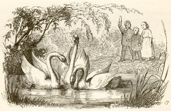 The duckling, now having fully grown and matured, cannot endure a life of solitude and hardship anymore. He decides to throw himself at a flock of swans, feeling that it is better to be killed by such beautiful birds than to live a life of ugliness. He is shocked when the swans welcome and accept him, only to realise by looking at his reflection in the water that he had been not a duckling but a swan all this time. The flock takes to the air, and he spreads his wings to take flight with the rest of his new family.