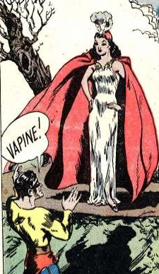 Valpine is a beautiful yet deadly villainess with hypnotic powers equal to Menta of the Triple Terror. Seeing him as her equal, she repeatedly tries to recruit him to her side, but he refuses. In the end, although her gang and lieutenant, the Glove, are captured, Valpine escapes through a secret panel—vowing to return and face the heroes another day.