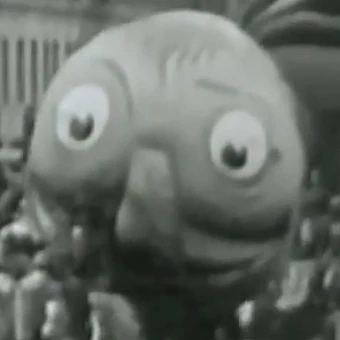Among these first balloons was the Wobbly Head. Designed by Sarg and crafted by Goodyear Rubber and Tire Company, the ballooning behemoth traveled down the parade route aboard a horse-drawn carriage. The rubber head was so large that, according to newspapers, it "took up most of the street". Both sides of the balloon featured different facial expressions on the front and back, respectively; the front scowled, and the back gave a grin.